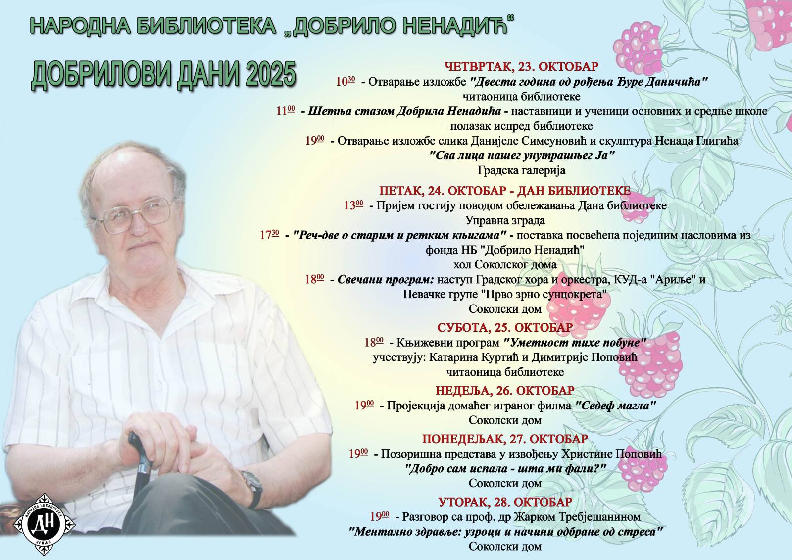 Tradicionalno i ove godine Narodna biblioteka „Dobrilo Nenadić“ organizuje šestu po redu manifestaciju „Dobrilovi dani “ posvećenu Dobrilu Nenadiću, našem najvećem romansijeru i agronomu. Manifestacija počinje 23. oktobra i traje do 28.oktobra.